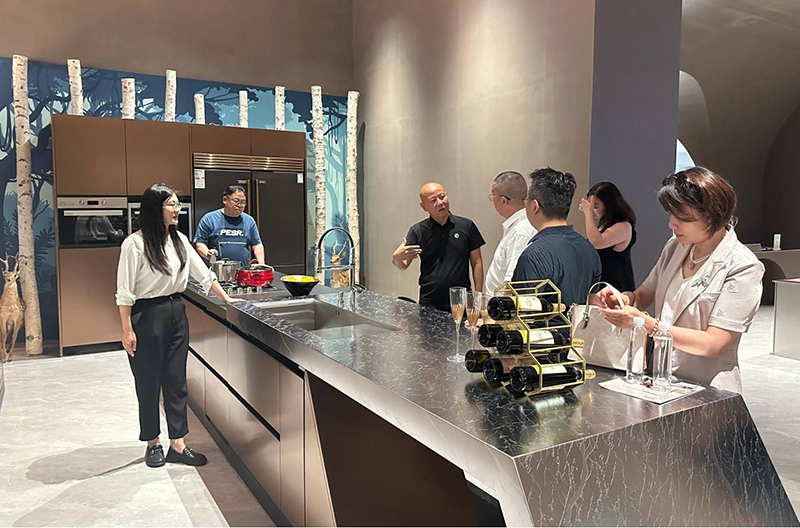 在厨房文化博物馆内,调研组通过“火塘时代—土灶时代—砖灶与独立厨房—现代整体橱柜时代—不锈钢橱柜时代—AI智能时代”的完整展陈,系统了解中国厨房的演进脉络。从远古先民的火塘烹煮到如今的智能厨房,法迪奥以不锈钢为载体,串联起千年饮食文化与现代家居美学,其打造的“全·匠·美”核心理念,将钢艺的技艺属性与艺术价值深度融合,让调研组直观感受到传统产业转型升级的独特路径。