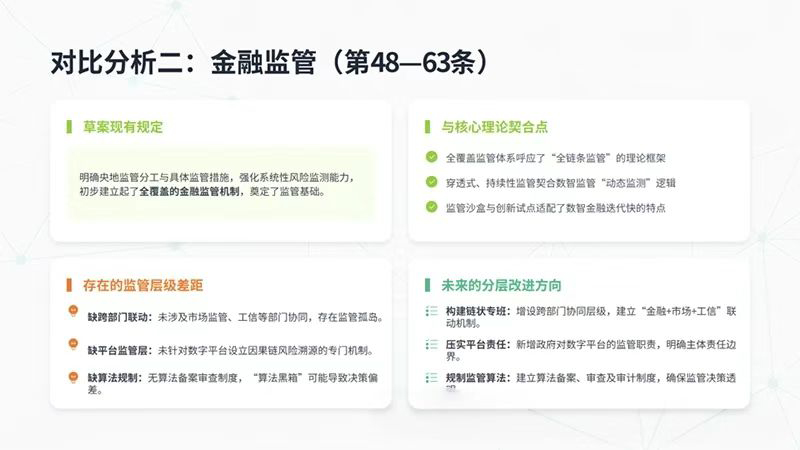 (三)关于第七章 金融监管(第 48—63 条):创新监管机制,提升监管效能