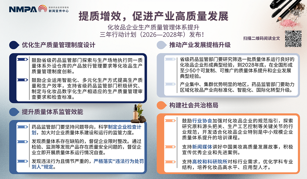 图解海报 | 《化妆品企业生产质量管理体系提升三年行动计划(2026—2028年)》系列政策图解(三)