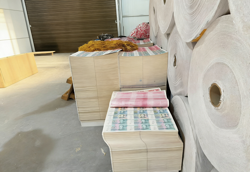 案情简介:2024年12月,中国人民银行渭南市分行联合大荔县市场监管局,对某商贸公司开展联合执法,现场查获大量“人民币版”冥币成品、半成品及印刷模板。